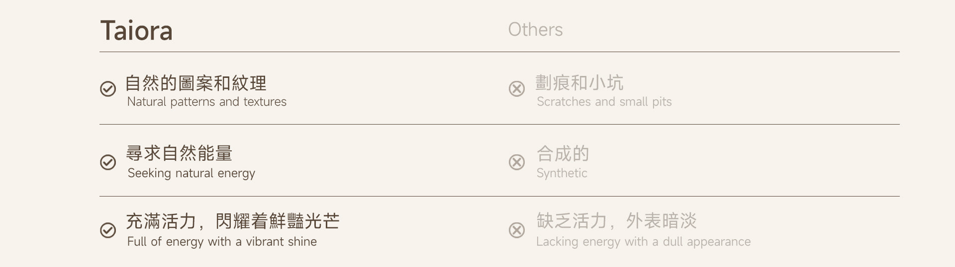 我們所有的產品都採用天然寶石製成。我們精心挑選優質的天然材料。它們由大自然形成,每顆水晶都是獨特的,顏色、質地和內部圖案可能有所不同。